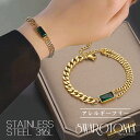 【P5倍+45%OFFクーポン有!! ~ 2025.10.23 23:59迄】 ステンレス グリーンスクエア 喜平チェーン ブレスレット/サージカルステンレス 大人可愛い 上品 デイリー 安心 金属アレルギー プレゼント パーティー ジュエリー ユニセックス 女性 スワロ問屋