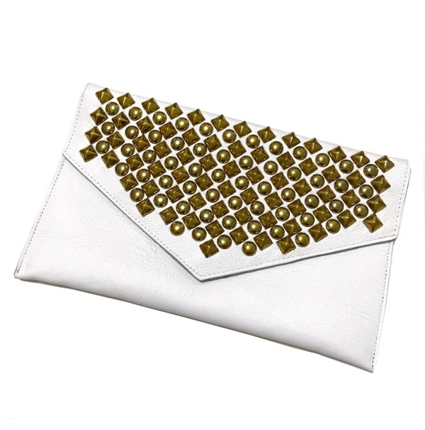 セレブ愛用 ブランド JJ winters ジェイジェイウィンターズ イタリアンレザー Blair clutch エンベロープ クラッチバッグ 封筒型バック ホワイト スタッズつき