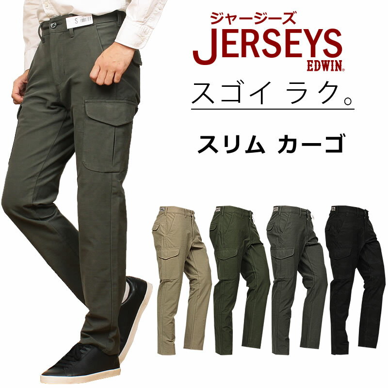 EDWIN エドウィン ジャージーズ チノ スリム カーゴエドウイン JERSEYS ブラック テーパードJMC832_814_819_803_975アクス三信/AXS SANSHIN/サンシン【税込¥11000(本体価格¥10000)】