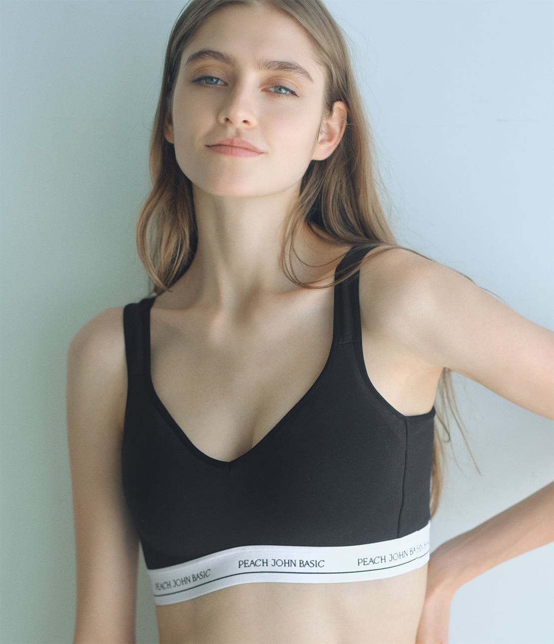 PEACH JOHN 好評のコットン混ノンワイヤーブラ.コットンMIXロゴノンワイヤーブラ ピーチ・ジョン インナー・ルームウェア ブラジャー グレー ブルー ブラック