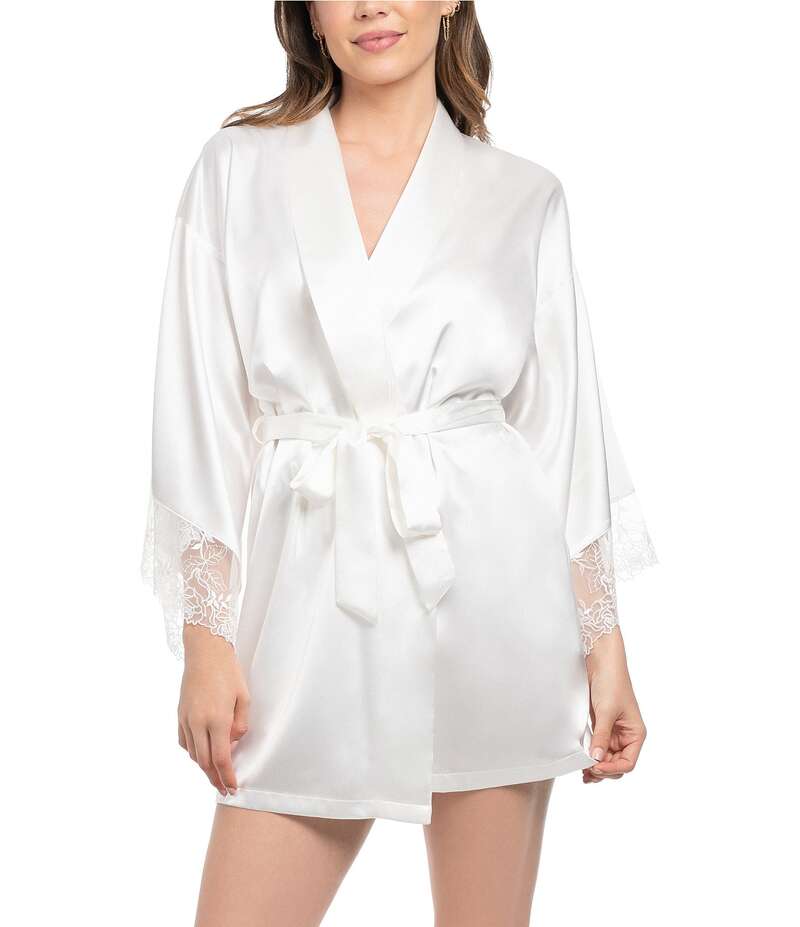 インブルーム レディース アンダーウェア ナイトウェア サテン In Bloom By Jonquil Solid 3/4 Sleeve Shawl Collar Satin Short Robe Ivory アイボリー