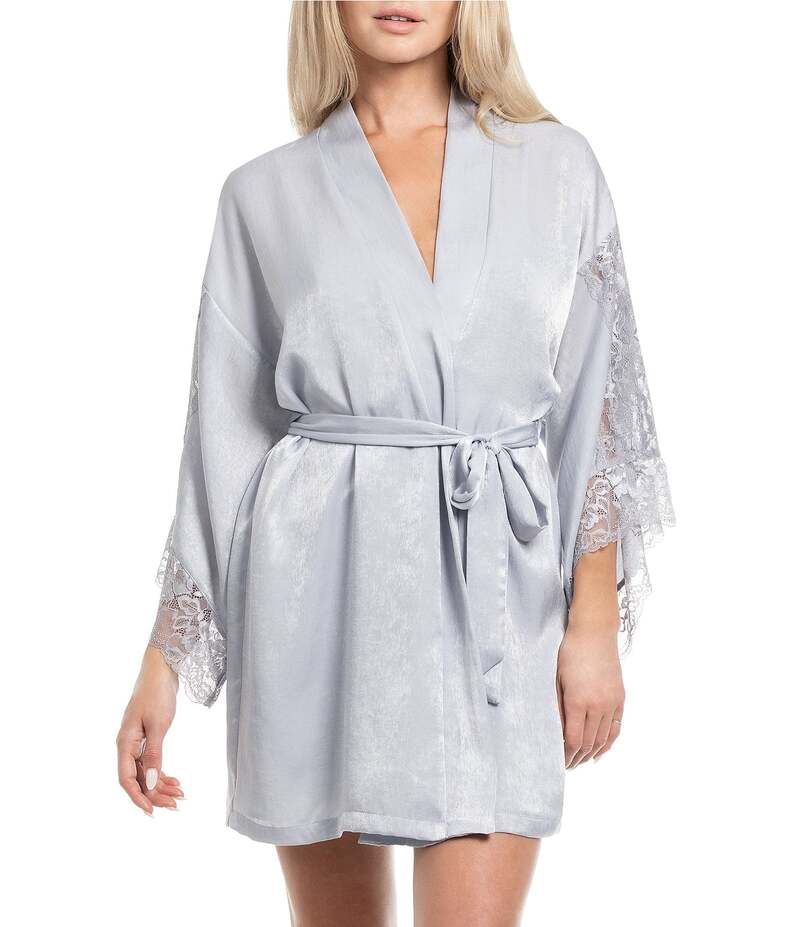 インブルーム レディース アンダーウェア ナイトウェア サテン In Bloom By Jonquil Shimmer Satin 3/4 Sleeve Coordinating Short Lingerie Robe Silver シルバー
