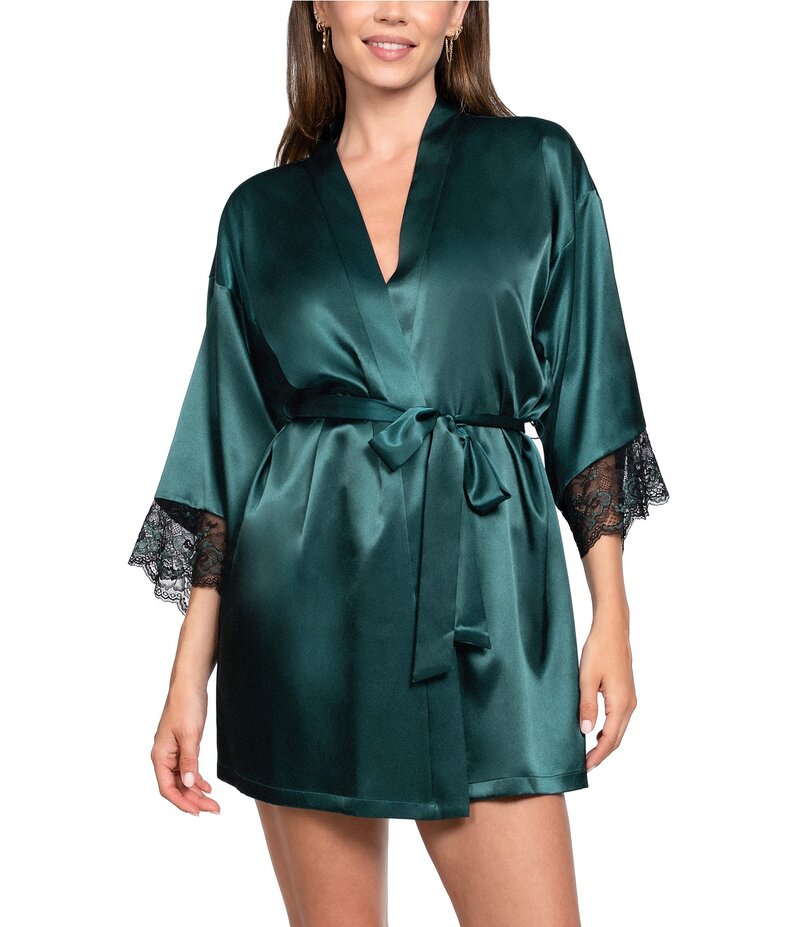 インブルーム レディース アンダーウェア ナイトウェア サテン In Bloom By Jonquil Satin 3/4 Sleeve Shawl Collar Coordinating Short Robe Pine Green グリーン