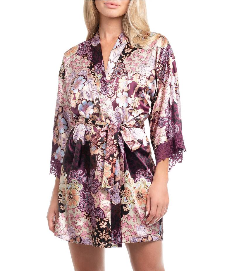 インブルーム レディース アンダーウェア ナイトウェア サテン In Bloom By Jonquil Satin 3/4 Sleeve Satin Boho Paisley Coordinating Short Lingerie Robe Plum プラム