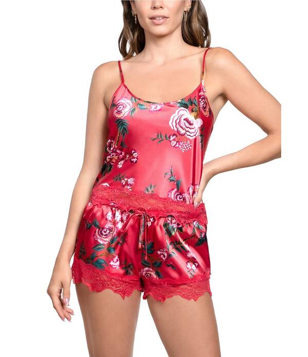 インブルーム レディース アンダーウェア ナイトウェア フラワー柄 プリント サテン ノースリーブ フラワー In Bloom By Jonquil Tap Floral Print Sleevelesscoop Neck Satin Shorty Pajama Set Red レッド