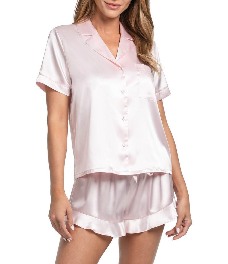 インブルーム レディース アンダーウェア ナイトウェア フリル サテン In Bloom By Jonquil Satin Short Sleeve Notch Collar Button-Front Shorty Ruffled Pajama Set Rose Quartz