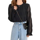 [Moerstar]シャツブラウスレディースパール立ち襟シャツシフォントップスギャザー長袖エレガントおしゃれ着瘦せ長袖トップスエレガント可愛いオフィスおしゃれクールネック長袖(JPアル…
