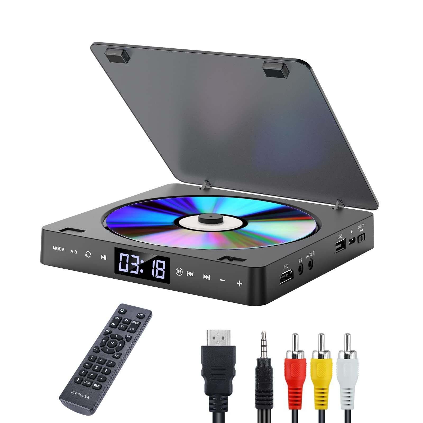 DVD/CDプレーヤー HDMI端子搭載 最大1080Pの解像度 ポータブル DVD/CDプレイヤー 超小型 空間を占めず A-Bリピート ランダム再生 USB2.0対応 3.5mオーディオジャック DVD/VCD/CD/CD-G/MP3/JPEGなどに