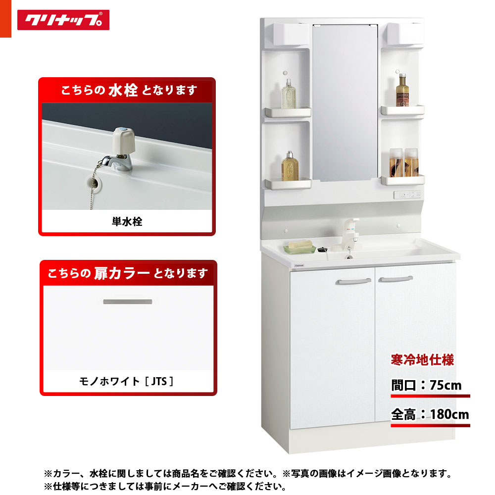 (LINEクーポン有)(送料無料)クリナップ 洗面化粧台 BGAシリーズ BGAL75TNTSWJTS 洗面化粧台 開きタイプ 間口75cm シングルレバー水栓 モノホワイト(JTS)(代引不可)