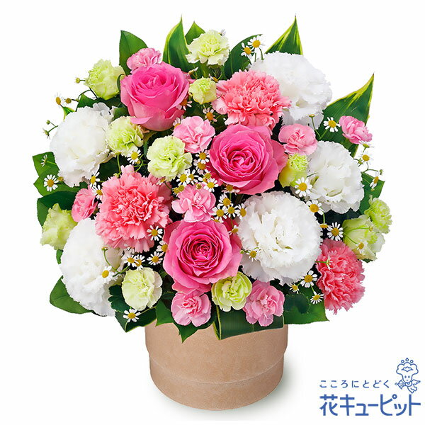 ■【結婚祝い】ピンクバラのポットアレンジメント アレンジメント/ワンサイド 9790 円(税込)ピンクのバラと白い花々をあわせた、上品でかわいらしい印象のアレンジメント。フォーマルな贈り物にも最適です。二人の新しい門出を祝い。華やかなお花を贈りましょう。お届け先近くの花キューピットのお店から、メッセージカード付で直接お届けいたします。※商品価格にはご利用手数料990円(税込)が含まれております。※配達不能な区域がありますので必ずご確認ください。配達不能地域へのご注文についてはキャンセルとさせていただきます。【色合い】:ピンク【スタイル】:アレンジメント【主な花材】:ピンクバラ【サイズ】:高さ37×幅34×奥行24cm【こんなご用途に】:結婚記念日・一周年・ジューンブライド・ブライダルのお祝いご注文に関する注意事項※写真はイメージです。 地域・季節によって、一部花材・花器等が異なる場合がございます。商品価格にはご利用手数料990円(税込)が含まれております。※配達不能な区域がありますのでご確認ください。配達不能地域へのご注文についてはキャンセルとさせていただきます。※メッセージカードは無料にてお付けします。※メッセージカードにはお名前は入りません。必要な場合はメッセージ内にご記入ください。 『 無 料 メ ッ セ ー ジ ご 利 用 の 方 へ 』 ●「定型文をご利用の場合」 ・上記商品欄の【メッセージ】を選択 ●「フリー入力をご利用場合」※産直ギフトはご記入していただいても、対応できません。 ・メッセージの入力場所:注文確認画面内の備考欄にございます、メッセージ入力欄にて承ります。 ・メッセージの文字制限:差出人のお名前を含み30文字まで。絵文字、機種依存文字などの文字は使用できません。 ※フリー入力をご利用の場合、上記商品欄の【メッセージ】で選択されたメッセージは記載されませんお届け日について※ご購入商品、お支払い方法により詳細が異なりますのでご注意ください。 ※コンビニ前払いの場合は:入金期限日前迄にご入金ください。※コンビニ前払いの場合、お花のご手配は入金後となります。期日までにお支払いが確認できない場合は、キャンセル扱いとさせていただきます。カード決済エラーによる入金遅延もこれに準じます。 注文後に送付されます【注文確認メール】に記載のある、支払い期日までにご入金ください。お届け先へ事前に在宅確認の連絡をする場合があります。なお、連絡がつかない場合は、ご指定の日時にお届けができない場合がございます。■コンビニ前払い際の注意ご注文後に、お支払い受付番号を記載したメールを楽天市場からお送りいたします。お支払いの際にはお支払い受付番号が必要です。※お届け希望日前日を過ぎての入金の場合、入金期限内でもお届け日を変更させていただく場合がございます。予めご了承ください。
