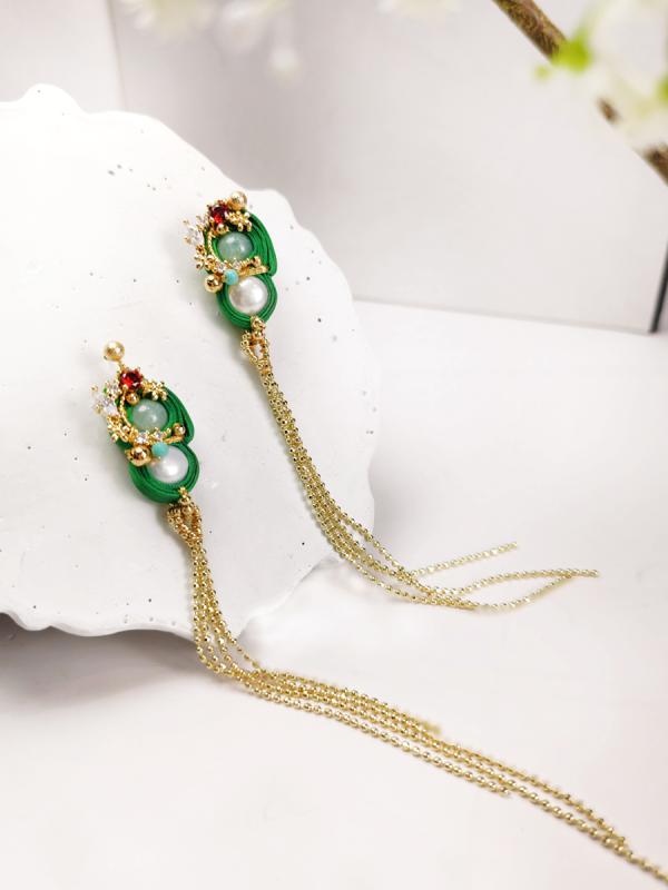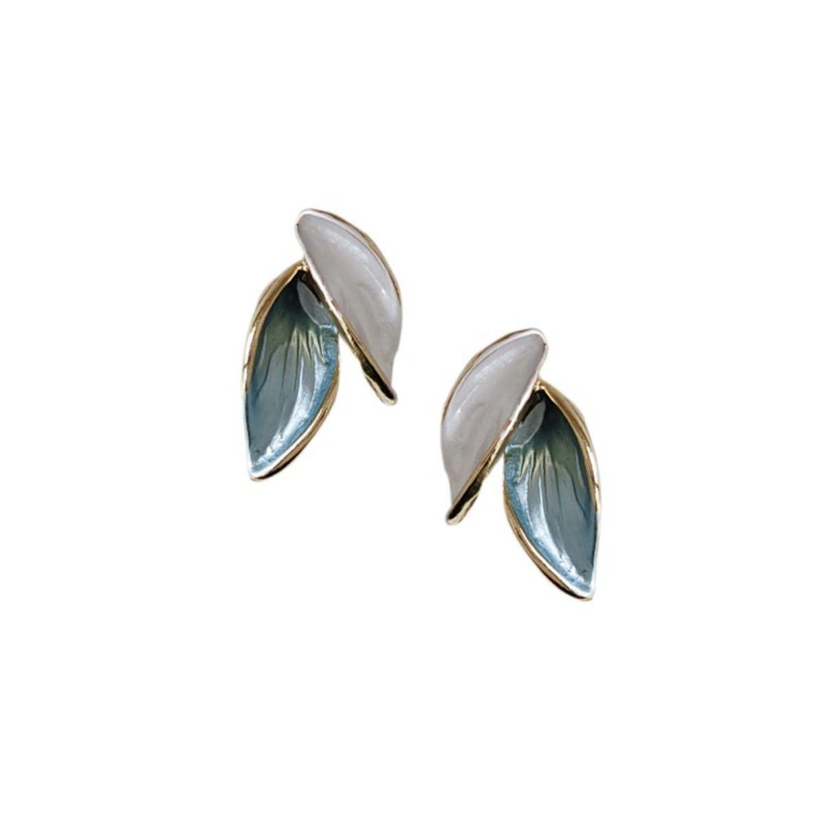 フレッシュ925シルバーニードルメッキ14Kテクスチャスモールリーフイヤリング女性用グリーンイヤリング1組。, 銅, 宝石なし