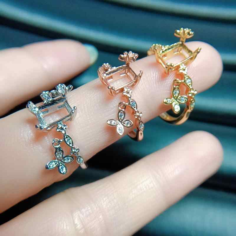 指輪 リング レディース 女性用 シルバー925 空枠 長方形 5×7mm シルバーカラー ローズゴールドカラー ゴールドカラー フリーサイズ オフィス カジュアル 普段使い 煌めき 春夏