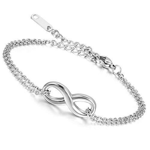 カップル ブレスレット お揃い ステンレス アンクレット: 無限大 8字 シルバー 愛の証 レディース バングル 手脚も適合 シンプル ジュエリー 可愛い クリスマス バレンタインデー-プレゼン