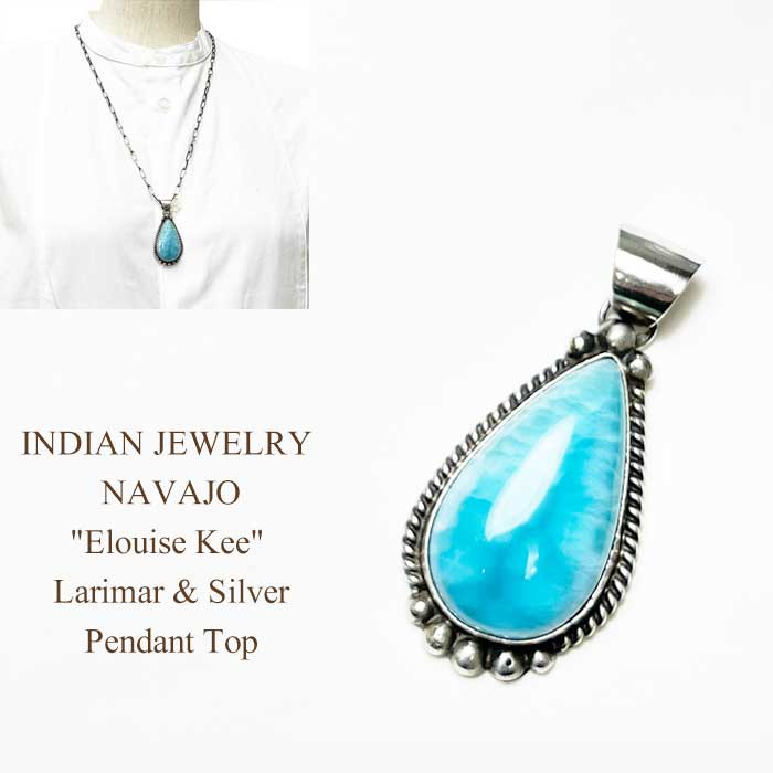 インディアンジュエリー ナバホ族 天然石 ラリマー シルバー ペンダント トップINDIAN JEWELRY NAVAJO "Elouise Kee" Larimar Pendant Top