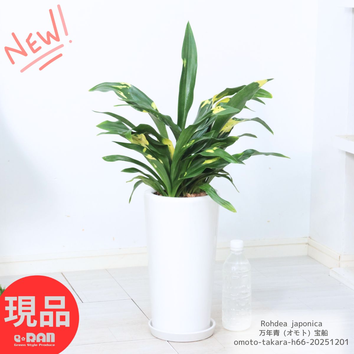 ※売り切れた場合、商品の更新を行う為 商品ページの写真は変わってしまいます。 購入後再度確認したい場合は画像の保存をお勧めいたします。 ■ 観葉植物名 【1点もの・送料無料】宝船と名前も縁起が良いことからお祝い事の贈り物として オススメの万年青(オモト)宝船 宗石 陶器鉢仕立 ■ 植物サイズ 鉢を含む全体の高さ約66cm前後 撮影2025/12/01 しっかりとした美しい株立ち仕立 ■ 植木鉢サイズ 【ラウンドホワイト陶器鉢】 ・ 外寸直径約17cm ・ 高さ約32.5cm ・ 専用陶器受皿付 ■ 植物の説明 ★ 学名 Rohdea japonica ユリ科 オモト属 ★ 花言葉 『長命』『長寿』『崇高な精神』『母性の愛情』 ★ 元気で美しい縁起の良い万年青(オモト) 産直で厳選品だけをお届けさせて頂いております。 ★ 日頃の感謝を込めて送るには最適なグリーンです。 ★ 出荷時期により実の無い事もあります。 ★ 万年青栽培の歴史は300年とも400年以上とも言われ、古くは徳川家康が江戸城へ入る時、家臣の中に万年青を献上したものがいるとも伝えられています。 ★ 古来から、庭に万年青を植えると災難を防ぎ万年も家が栄えつづけるといわれています。 ★ 薩摩藩が独自の産業、藩の美術品としておもとを門外不出のものとしたと伝え聞いています。 ★ 「宝船」は黄斑が特徴です。元品種「宗石」を特殊栽培で鮮明な斑入りとなるよう栽培されたものです。 ★ 宝船と名前も縁起が良いことからお祝い事の贈り物としてとても人気のある植物です。 ★ 場所を取らず素敵な空間演出ができます。 ★ 美しくスタイリッシュな容姿で人気の商品です。育て易く日陰にも強い植物です。 ■ サービス ★ 用土の表面には、植物に優しいお洒落な園芸用インテリアバークチップを敷いてあります。(乾きを抑えお洒落な化粧です。) ★ 出荷時、2種の緩効性肥料(水を与えた時ゆっくり溶ける肥料)をマルチングの下に乗せてありますので、お届け後、1.5ヶ月間は肥料を与えなくて大丈夫です! ★ 出荷時、葉の手入れ、病害虫予防処理等、完全処理して発送させて頂いております。 ★ 【e-RANオリジナル管理説明書・肥料小袋付き】 ★ 【立札、メッセージカード、リボン、無料!】 ※ご注文の際、備考欄に明記してお申し付けください。 ■ 主な用途 ギフト 贈答 贈り物 プレゼント 御祝 お祝い 会社設立祝い 開店祝い 開所祝い 開業祝い 移転祝い 新築祝い 引越し祝い 結婚祝い 自宅用 観賞用 贈呈用 室内用 退職祝い 御祝い 出産祝い 内祝い 誕生日 結婚記念日 ホワイトデー お返し バレンタインデー 母の日 父の日 敬老の日 風水 魔除け 開運癒し オフィス お部屋 玄関 トイレ リビング 寝室 デスク 庭 キッチン エントランス インドア ガーデニング インテリア グリーン 自分用 お取り寄せ ポイント消化 潤いを与えてくれるパートナー 装飾 ■ 注意事項 ※現品商品は売り切れた場合、更新を行う為商品ページの写真は変わってしまいます。購入後再度確認したい場合は画像の保存をお勧めいたします。 ※全体の高さは鉢底から観葉植物の葉先までの高さとなります。 ※当店の商品は「生き物(植物)」です。 そのため、成長過程により生じるキズや、高さ・樹形の変化を理由とした返品・返金はお受けできません。 ご理解・ご了承のうえでご購入をお願いいたします。 ※実店舗販売も行っております関係でタイミングによっては売り切れてしまう場合が有ります。 (ご注文を頂きましてもタイミングによっては売り切れの場合もございます。予めご了承下さいます様宜しくお願い申し上げます。) ※発送前に、薬剤の散布およびマルチングの下への化成肥料等の施肥を行っております。個人差はございますが、肥料のにおいが気になる場合がございます。その際は、お手数ではございますが、肥料を取り除いたうえで、屋外や浴室などで全体にシャワーをかけ、薬剤等を洗い流していただきますと、においが和らぎます。なお、そのままの状態でも、時間の経過とともに薬剤の効果とあわせてにおいは自然に薄れてまいります。 ※領収書など、その他、料金表示のあるものは希望が無い限り発行しておりません。ご希望の場合はご購入の際備考欄にてご記入ください。 ※生きている植物の為、写真と多少変わる場合がございます。予めご了承下さい。 ■ サイズからも選べます! ■ 販売実績 商品番号 omoto-takara-h57-20220214・omoto-takara-h62-20231201・omoto-takara-h58-20240216・h68-20241206 当店取り扱いの商品はこちらから検索できます。在庫が無い場合は【問い合わせ】よりご希望の植物名、サイズ(鉢サイズ)等をお知らせください。当店の取り扱い実績(五十音順):アカシア アガベ アグラオネマ アジサイ アデニウム アフリカンプリンス アポロゴム アマゾンオリーブ アムステルダムキング アルテシーマ アルピニア アレカヤシ アロエ アロカシア イランイラン インドボダイジュ ウエストリンギア ウンベラータ エアプランツ エバーフレッシュ オーガスタ タニワタリ ビロウ シダ ヘゴ オプ