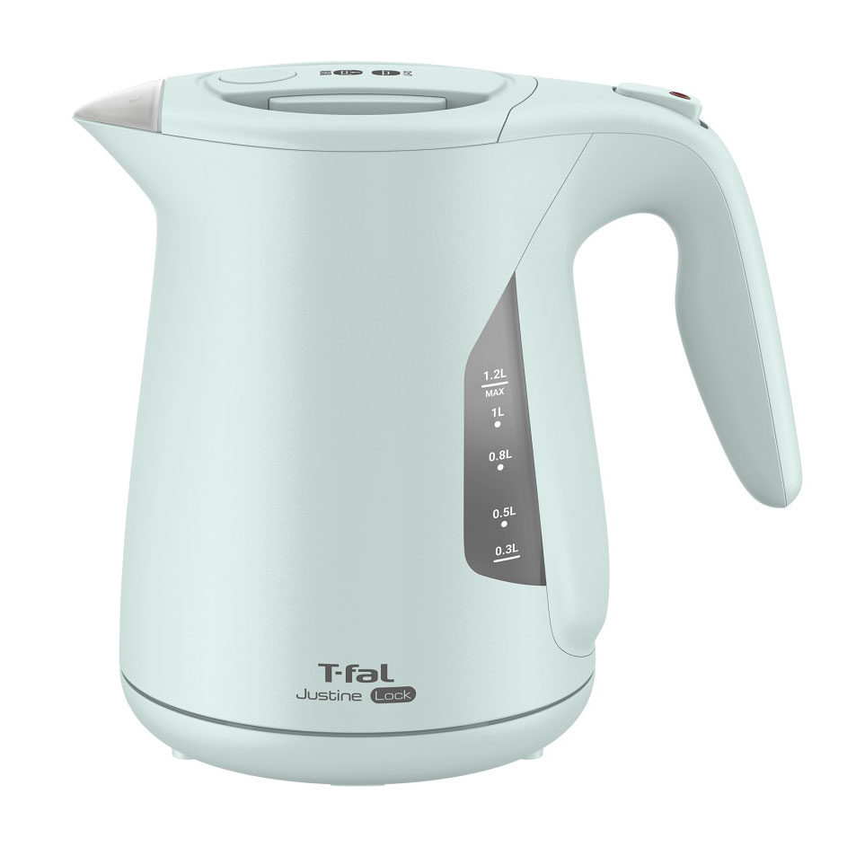 T-fal ティファール 電気ケトル 1.2L セージグリーン ジャスティン ロック KO5903JP ロックふた設計 空焚き防止 自動電源オフ 広口設計 両側水量目盛 注ぎやすい注ぎ口 お手入れ簡単 コード収納ベース付き 軽量ボディ