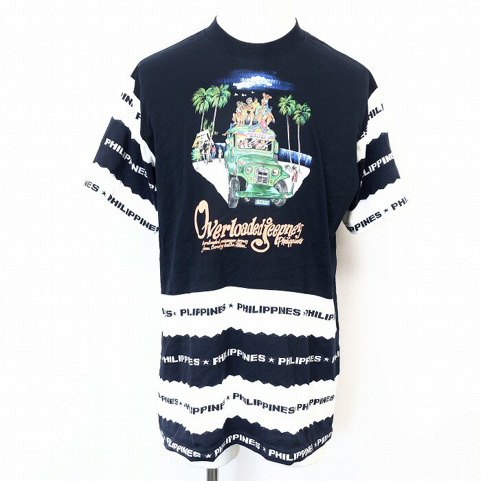 【楽天スーパーSALE限定!! \★半額★/対象商品|12月4日(木)20時00分〜12月11日(木)01時59分まで】【中古】 DIBUHO - - メンズ インポート古着 Tシャツ プリント フィリピン 『Overloaded Jeepney Philippines』 半袖 綿100% ネイビー×ホワイト