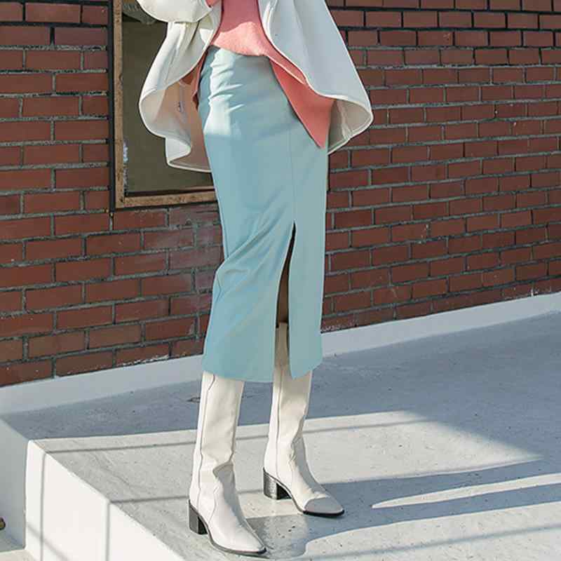 ・適用年齢: 25-29歳・サイズ展開: XS, S, M, L, XL, 2XL, 3XL・柄: 無地・スタイル: カジュアル・ウエスト: ハイウエスト・カラー展開: ジンジャーイエロー, ブラック, ミントブルー・スカートタイプ: タイトスカート・丈: ミディ丈・流行要素/加工: ジッパー, ボタン・シルエット: Hライン・主な素材: その他素材