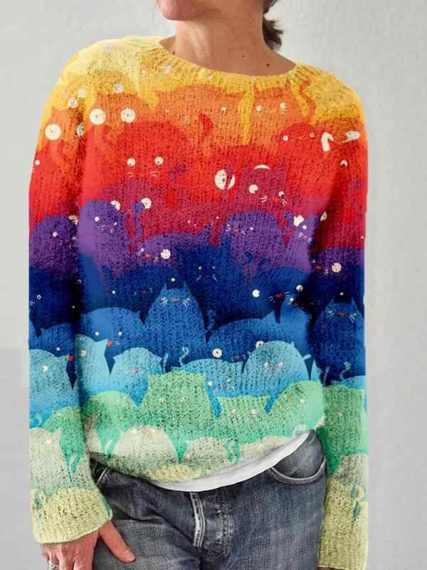 スウェット レディース 秋冬 猫柄プリント プルオーバー 長袖 トップス 3D 抽象柄 ゆったり カジュアル 暖かい 裏起毛 かわいい S M L XL 2XL 3XL 4XL 5XL