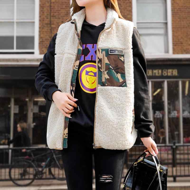 ベスト レディース 秋冬 シープボア あったか フリース ベスト アウター ゆったり 大きいサイズ スポーティー MIXカラー ジップアップ ポリエステル 黒