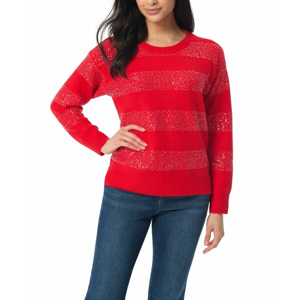 グロリアバンデービルト レディース アウター ニット・セーター セーター スパンコール Gloria Vanderbilt Women's Juliette Striped Sequin Long Sleeves Sweater Strawberry Kiss ストライプ