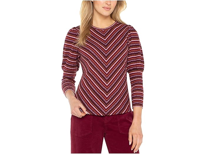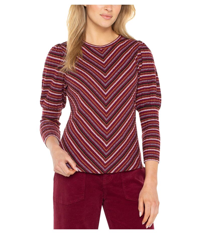 (取寄) リバプールロサンゼルス レディース 3/4 ジュリエッタ スリーブ クルー ネック ニット トップ W/ マイター Liverpool Los Angeles women 3/4 Juliette Sleeve Crew Neck Knit Top W/ Miter Burgundy Multi Stripe