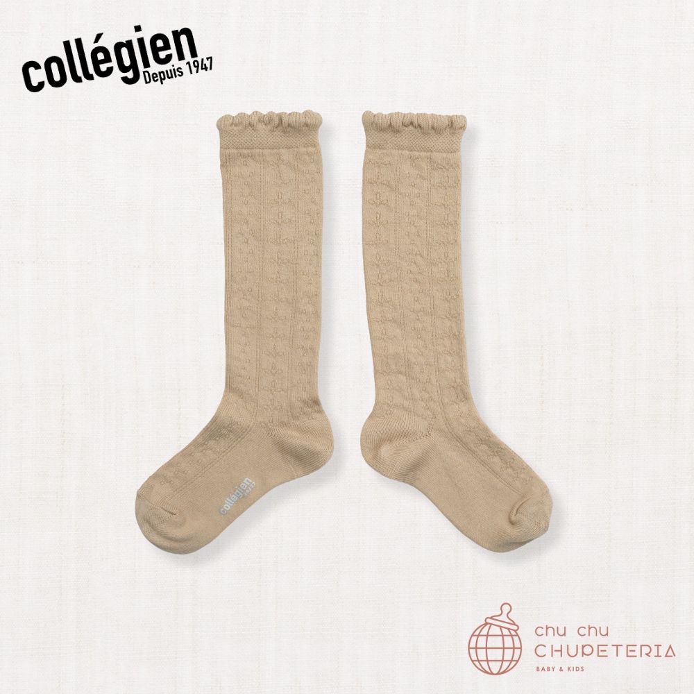 【Collegien】Juliette - Pointelle Organic Cotton Knee-high Socks - Sable-