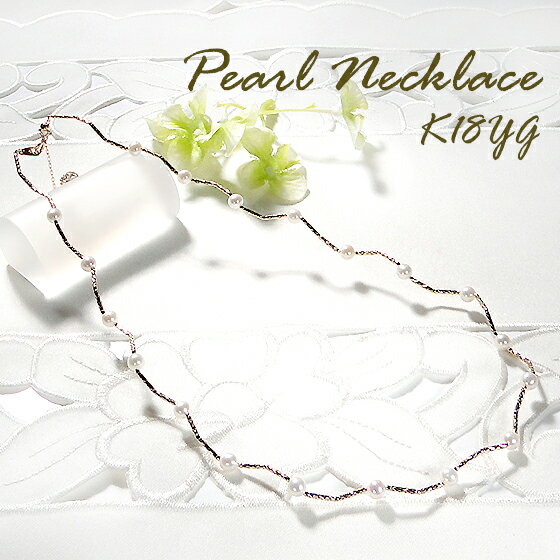 【送料無料】【代引手数料無料】【品質保証書】 ☆清楚に輝く形状記憶パールネックレス ☆ゴールドと艶やかなパールの煌めき…K18イエローゴールドの形状記憶チェーンに、光沢のあるきれいな真珠をセッティングしたステーションネックレスです。曲線の美しいスタイリッシュなデザインが、華やかで高級感たっぷり♪型崩れしないのでデコルテに寄り添い美しいラインを保ってくれます。チェーンはスライド式ですので、ご自分のスタイルに合わせてお好みの長さに調整可能です。フォーマルなシーンだけでなく、普段使いのジュエリーとしてもお使いいただけるアイテム!柔らかなパールの輝きと上品に煌めくゴールドがエレガントな大人の女性を演出します。 ☆誕生日やクリスマス、ホワイトデーなどのイベント時のプレゼント贈り物としても最適です。また、自分へのご褒美にも♪ ■商品詳細(写真1) 素材 K18イエローゴールド 石 パール 約4.0mmX19p 全長 約40cm(スライド5cm付) 重さ 約4.845g