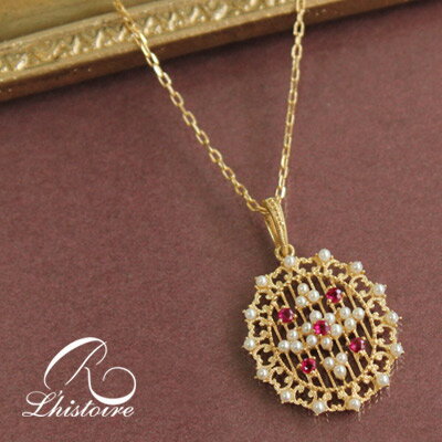 【スーパーセールクーポン有】【碌山】リストワール K18YG ルビー ペンダントトップ アンティークデザイン 碌山 リストワール ゴールドルビー シードパールペンダントトップアラベスク レース 透かし 碌山gold
