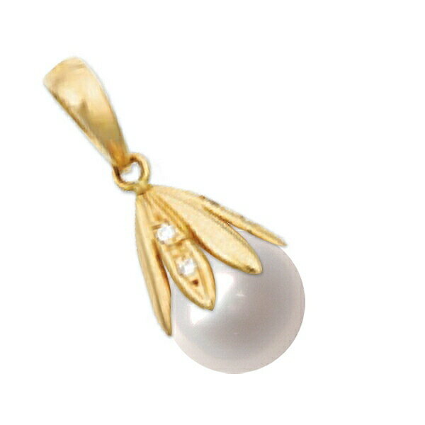 ペンダントトップ 18金 イエローゴールド あこや真珠ペンダント 9.0mm玉 0.05ctのダイヤモンド付き ペンダントヘッドのみ パール|K18YG k18 18k 貴金属 ジュエリー レディース