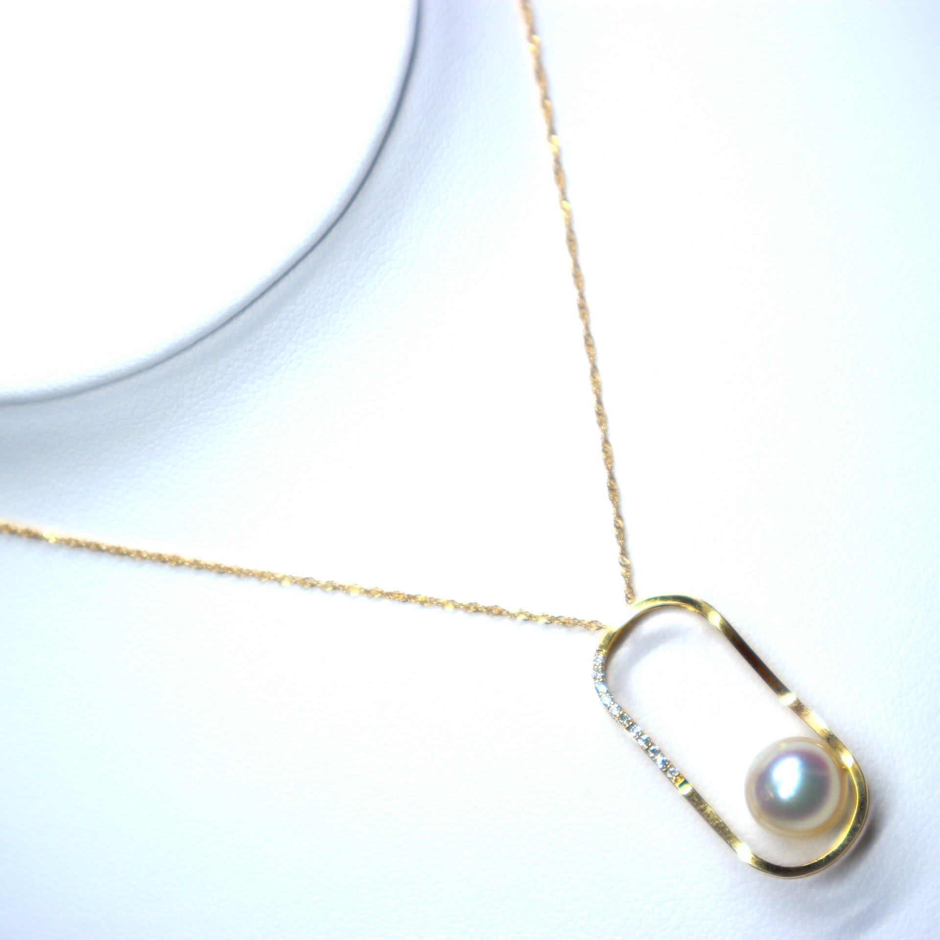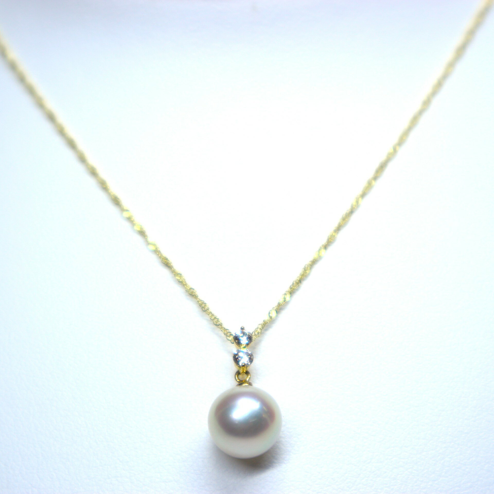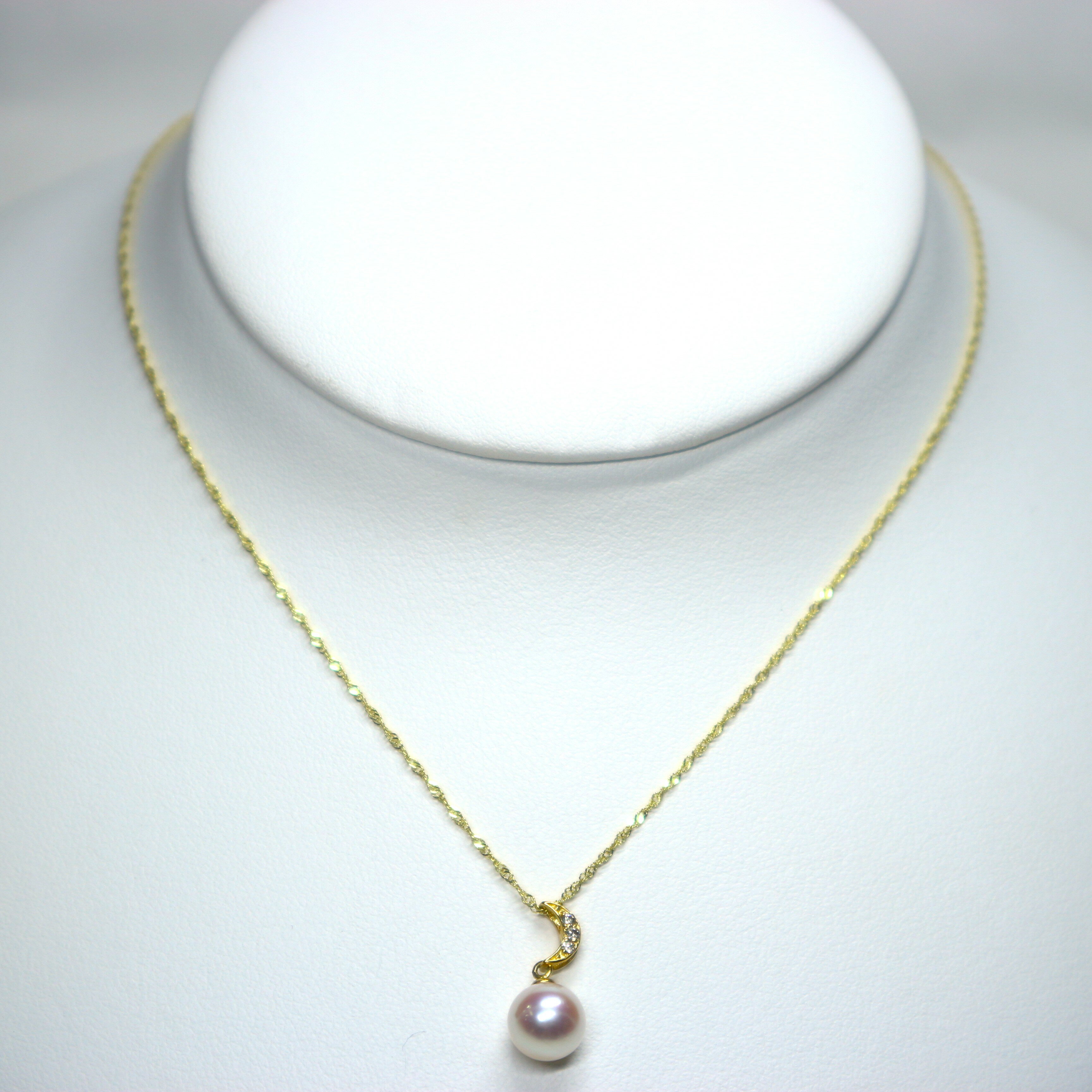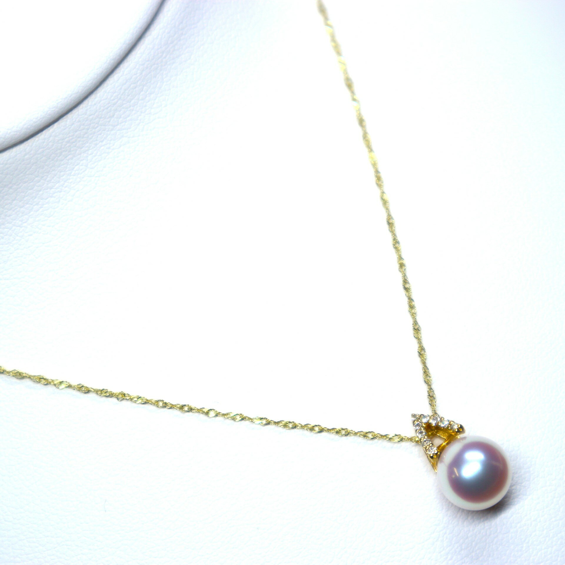 商品情報詳細※日本産本真珠であるアコヤ真珠(9.0mm珠)を使用しています。※金具はK18を使用しています。※チェーンの長さは約45cmです。※ダイヤモンドは0.05カラットです。※使用している真珠については、人為的に作られたイミテーションではなく天然の造形なのでひとつひとつ微妙に形・色・サイズが異なります。真珠一粒一粒が持つ、個性ですのでご了承下さい。伊勢志摩産本真珠使用 K18YGアコヤ真珠ペンダント(9.0mm珠)【本真珠 あこや真珠 真珠 ネックレス パールネックレス ペンダント デザインペンダント 一粒パール ゴールドチェーン 18金 ダイヤモンド プレゼント エレガント 上品 おしゃれ きれいめ 結婚式 】 色鮮やかなオーロラ色を放つアコヤ真珠をK18ゴールドで包み込んだ美しいデザインが目を惹くペンダントに仕上げました。 色鮮やかなオーロラ色を放つアコヤ真珠をK18ゴールドで包み込んだ美しいデザインが目を惹くペンダントに仕上げました。9.0mmの大粒アコヤ真珠とアクセントとして部分的に配置したダイヤモンドがキラリと輝きます。チェーンの通し方次第で横にも縦にも斜めにも通すことが可能で、いく通りもの顔を見せてくれる一品です。※日本産本真珠であるアコヤ真珠(9.0mm珠)を使用しています。※金具はK18を使用しています。※チェーンの長さは約45cmです。※ダイヤモンドは0.05カラットです。※使用している真珠については、人為的に作られたイミテーションではなく天然の造形なのでひとつひとつ微妙に形・色・サイズが異なります。真珠一粒一粒が持つ、個性ですのでご了承下さい。 2