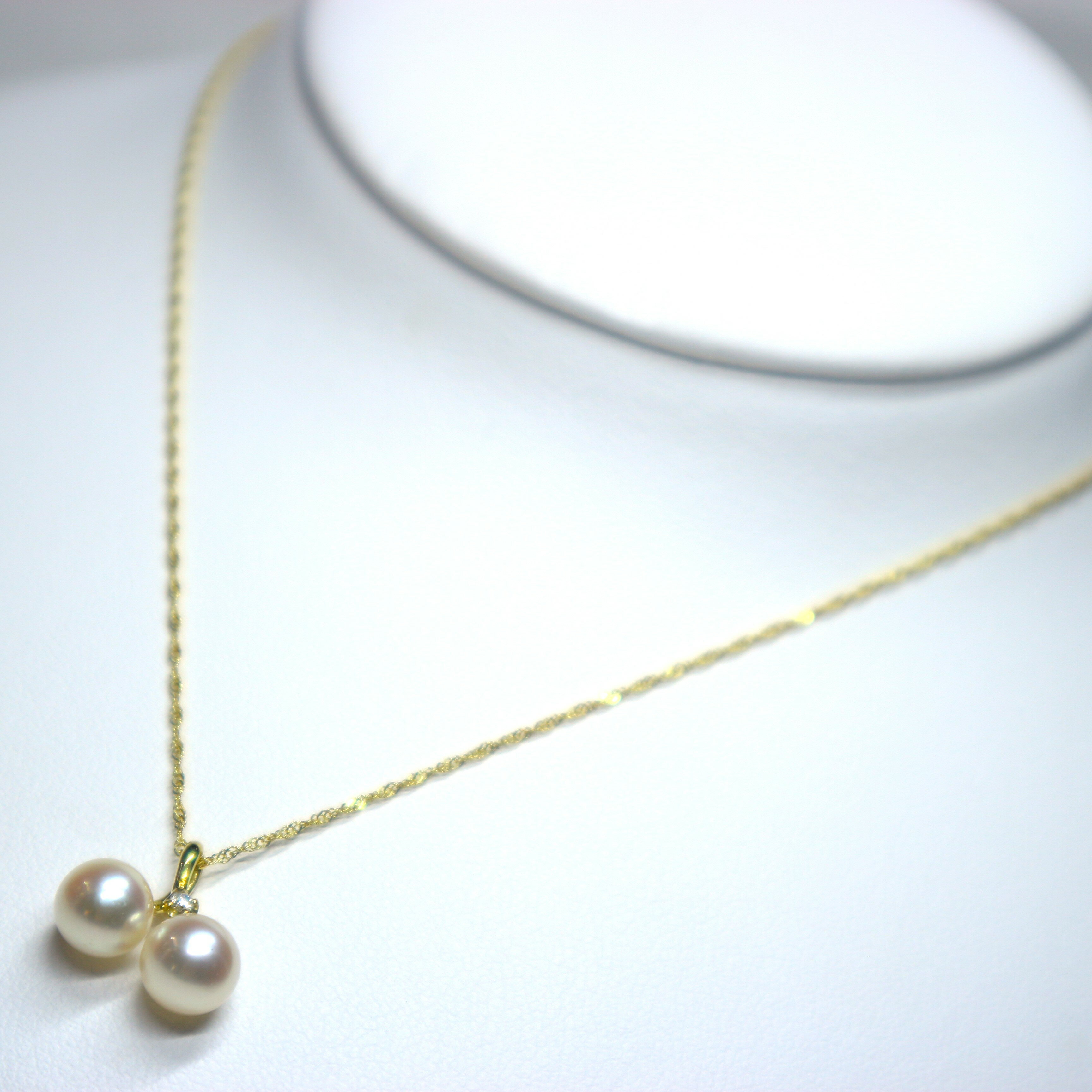 日本産本真珠使用K18YGアコヤ真珠ペンダント(6.5mm珠)【本真珠 あこや真珠 真珠 ネックレス パールネックレス ペンダント デザインペンダント 二粒パール ゴールドチェーン 18金 ダイヤモンド プレゼント シンプル 上品 おしゃれ かわいい 結婚式 】