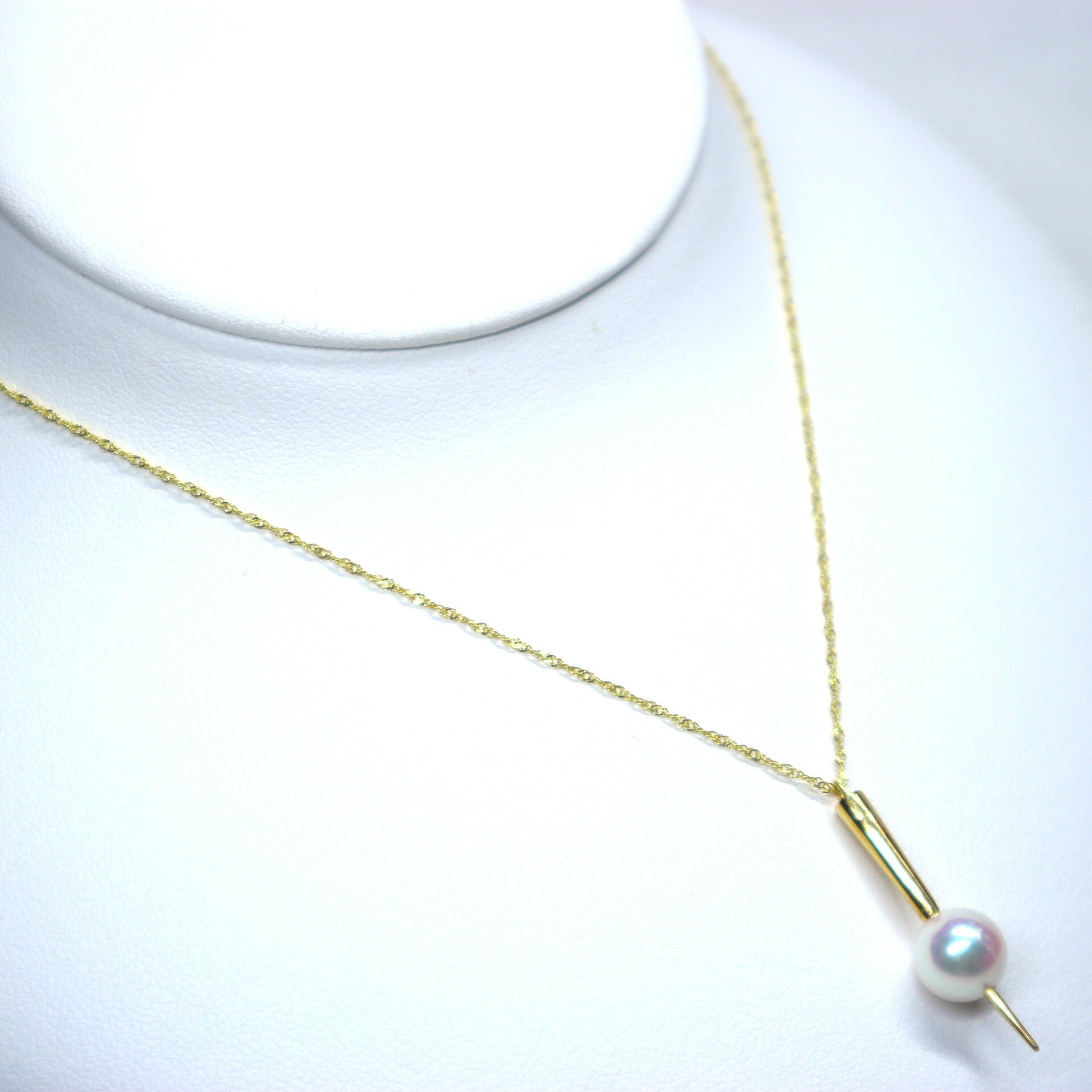 日本産本真珠使用 K18YGアコヤ真珠ペンダント(7.5mm珠)【本真珠 あこや真珠 真珠 ネックレス パールネックレス ペンダント デザインペンダント 一粒パール ゴールドチェーン 18金 プレゼント シャープ エッジ 個性的 おしゃれ きれいめ 結婚式 】