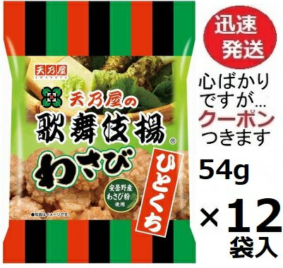 天乃屋 ひとくち歌舞伎揚わさび 54g×12袋入 わさびせんべい まとめ買い おつまみ しょうゆせんべい 醤油 揚げせんべい アマノヤ 歌舞伎揚 KABUKIせんべい【心ばかりですが…クーポンつきます☆】