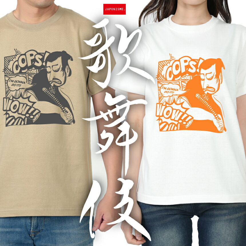 【歌舞伎】 綿Tシャツ メンズ レディース ユニセックス 和柄 中村仲蔵 浮世絵 鈴木春信 勝川春章 落語 講談 江戸 文様 家紋 和風 かっこいい かわいい kabuki JAPONISME 半袖 綿100% S〜XLサイズ バニラホワイト/サンドカーキ