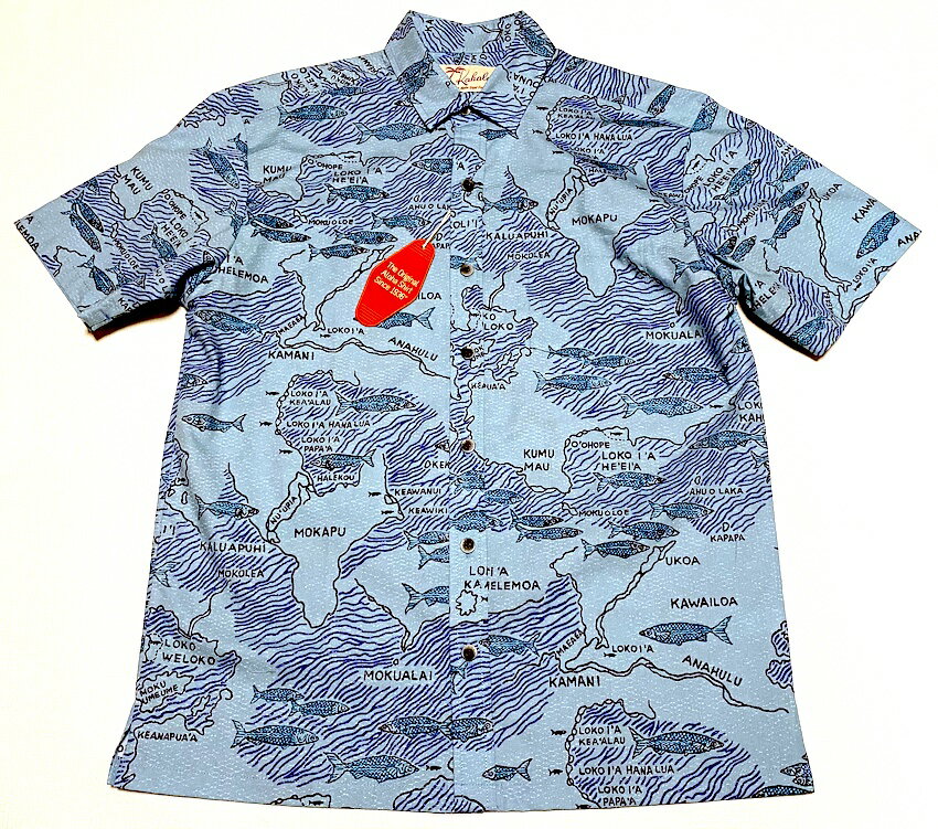 アロハシャツ メンズ 大きいサイズ KAHALA カハラ KHL135 水色 ライトブルー 魚柄 地図 マリン リゾート ハワイアン 人気 おしゃれ ブランド プレゼント ギフト 母の日 父の日 イベント クリスマス 衣装 旅行 結婚式 サーフ系 送料無料