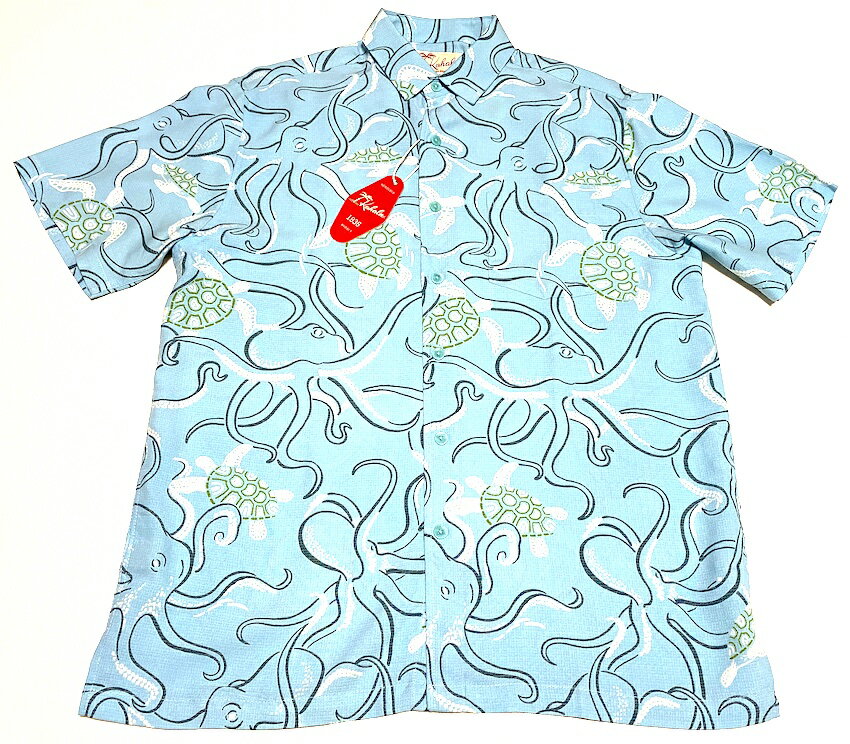 アロハシャツ メンズ 大きいサイズ KAHALA カハラ KHL140 水色 サックスブルー レディース ハワイアン ブランド 高級 ウミガメ タコ 人気 おしゃれ プレゼント ギフト 父の日 母の日 お祝 イベント 結婚式 衣装 個性的 旅行 レーヨン86%ポリ14% ノーマルカラー 送料無料