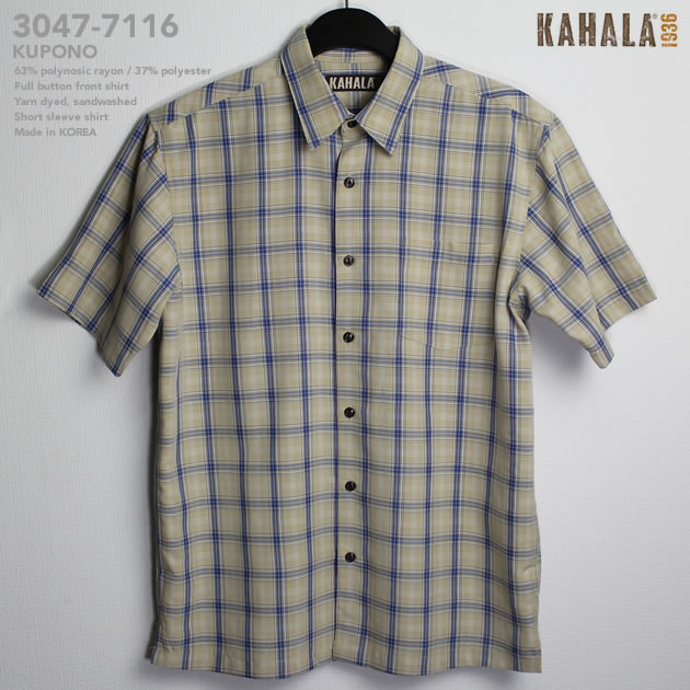 アロハシャツ|カハラ(KAHALA)|3047-7116 KUPONO(クポノ)|サンド|メンズ|レーヨン63% ポリエステル37%(Polynosic63% Rayon Polyester37%)|ノーマル襟|リラックスフィット|フルオープン|半袖|アロハタワー(アロハシャツ販売)