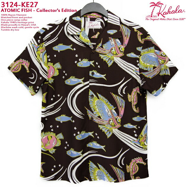 アロハシャツ|カハラ(KAHALA)|KH-KE27 ATOMIC FISH(アトミック フィッシュ)|コレクターズ エディション(1940'sヴィンテージ)|ブラウン|レーヨン100%|開襟|スタンダードフィット(やや細めのスタイル)|フルオープン|半袖|専用ボックス付き|アロハタワー