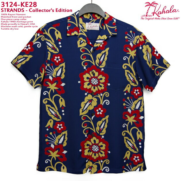 アロハシャツ|カハラ(KAHALA)|KH-KE28 STRANDS(ストランド)|コレクターズ エディション(1940'sヴィンテージプリント)|ネイビー|メンズ|レーヨン100%|開襟|スタンダードフィット(やや細めのスタイル)|フルオープン|半袖|専用ボックス付き|アロハタワー