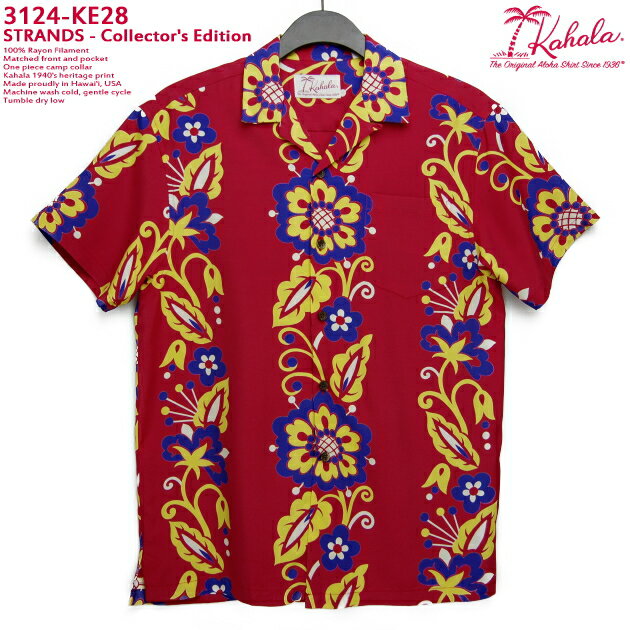 アロハシャツ|カハラ(KAHALA)|KH-KE28 STRANDS(ストランド)|コレクターズ エディション(1940'sヴィンテージプリント)|レッド|メンズ|レーヨン100%|開襟|スタンダードフィット(やや細めのスタイル)|フルオープン|半袖|専用ボックス付き|アロハタワー