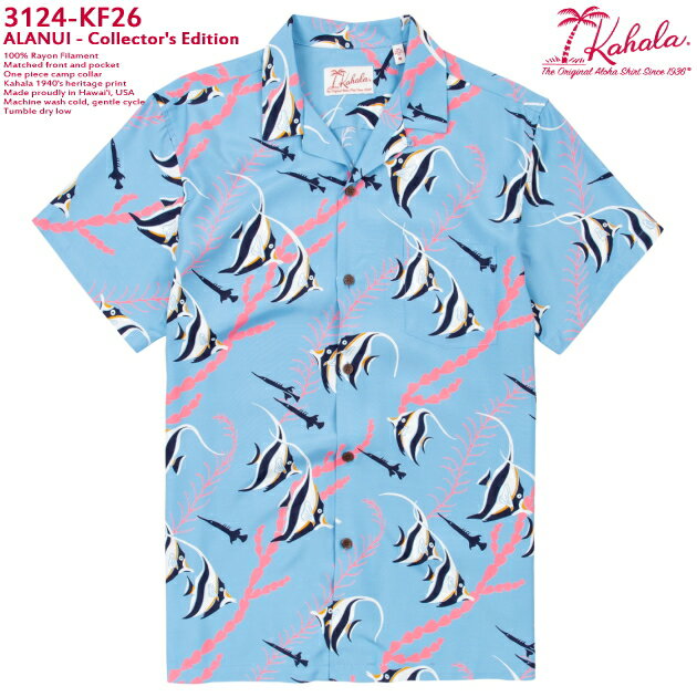 アロハシャツ|カハラ(KAHALA)|KH-KF26 ALANUI(アラヌイ)|コレクターズ エディション(1940'sヴィンテージ)|ブルー|レーヨン100%|開襟|スタンダードフィット(やや細めのスタイル)|フルオープン|半袖|専用ボックス付き|アロハタワー(アロハシャツ販売)