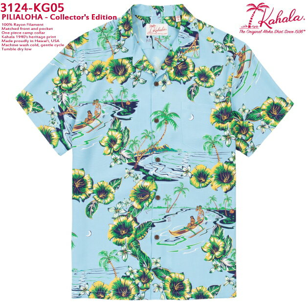 アロハシャツ|カハラ(KAHALA)|KH-KG05 PILIALOHA(ピリアロハ)|コレクターズ エディション(ヴィンテージ)|ブルー|レーヨン100%|開襟|スタンダードフィット(やや細めのスタイル)|フルオープン|半袖|専用ボックス付き|アロハタワー(アロハシャツ販売)
