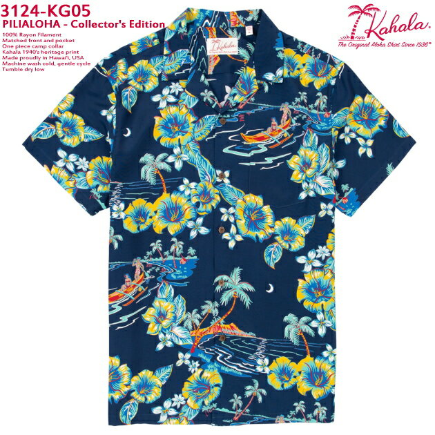 アロハシャツ|カハラ(KAHALA)|KH-KG05 PILIALOHA(ピリアロハ)|コレクターズ エディション(ヴィンテージ)|ネイビー|レーヨン100%|開襟|スタンダードフィット(やや細めのスタイル)|フルオープン|半袖|専用ボックス付き|アロハタワー(アロハシャツ販売)