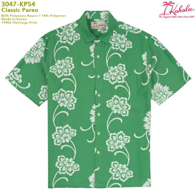 アロハシャツ|カハラ(KAHALA)|KH-3047-KP54 CLASSIC PAREO(クラシック パレオ)|ピスタチオ|メンズ|ポリノジック・レーヨン86% ポリエステル14%|ノーマル襟|スタンダードフィット(やや細めのスタイル)|フルオープン|半袖|アロハタワー(アロハシャツ販売)