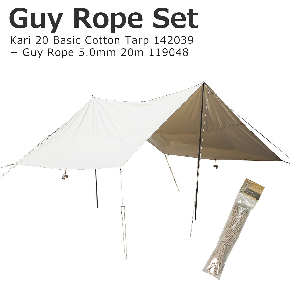 【クーポン4種あり】ノルディスク タープ カーリ 20【2022年モデル】Nordisk Kari カリ Basic Cotton Tarp + ガイロープ Guy Rope 5.0mm 20m Incl. Pegs/Poles/Guy Ropes 142039 / 119048