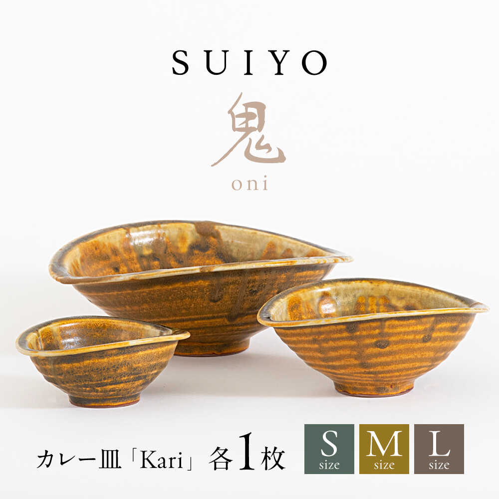 \定番カレー皿がリニューアル/ 開窯以来の技術と感性を詰め込んだ、Kariシリーズ この返礼品のポイント ・料理に合わせて使えるS・M・Lの3サイズセット ・カレー皿にぴったりの深さのある形 ・電子レンジOKでお手入れ簡単 ・どんな食卓にも馴染む洗練されたデザインで便利 ・手作りの温かみを感じる風合い 開窯当時から作り続けているカレー皿がリニューアル 英語の「Curry」の語源となる「Kari」はタミル語で具材を煮込んでできたソースや汁を意味します。 10年間作り続けてきた技術と感性を詰め込みました。 使い勝手の良い3サイズセット メインのカレーやパスタ、サラダやスープ、薬味まで。 S・M・Lの3枚セットで、様々な料理に対応できます。 ■注意事項/その他 ※お届け内容は「Kari 鬼 3サイズセット」です。 【お申し込み前に必ずお読みください】 人の手を介して制作されるお品物には個体差があり、一つ一つに形や色合いの違いが現れます。お品物には個体差が生じることをご理解の上、お申し込みください。 【色について】 商品写真はできる限り実物の色に近づけるよう徹底しておりますが、お使いのモニター設定、お部屋の照明等により実際の商品と色味が異なる場合がございます。 ほかのカラーはこちら 【瀬戸焼】Kari 黒金 3サイズセット Kari シリーズ 【瀬戸焼】Kari 狐 Lサイズ 1枚 【瀬戸焼】Kari 青竹 Lサイズ 1枚 【瀬戸焼】Kari 小豆 Lサイズ 1枚 【瀬戸焼】Kari 鬼 Lサイズ 1枚 【瀬戸焼】Kari 黒金 Lサイズ 1枚 その他の作品はこちら 商品説明 名称Kari 鬼 3サイズセット 内容量■お礼品の内容について ・Kari 鬼 (Demon) 3サイズセット S×1枚,M×1枚,L×1枚 ■原材料・成分 Kari-S 鬼×1 サイズ 約W13×D11×H5.5cm 重量 約155g Kari-M 鬼×1 サイズ 約W17×D14×H7cm 重量 約245g Kari-L 鬼×1 サイズ 約W23.5×D20.5×H8cm 重量 約600g 対応機器電子レンジ○ オーブン× 食器洗浄機× 加工地愛知県瀬戸市 配送方法常温 配送期日ご入金確認後、2か月半〜3か月で発送いたします 提供事業者SUIYO 食器 電子レンジ対応 皿 セット ギフト 地場産品基準該当理由 【全て3号】 陶磁器セット 原材料の仕入れ、土の調合、成形、施釉、焼成、梱包
