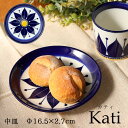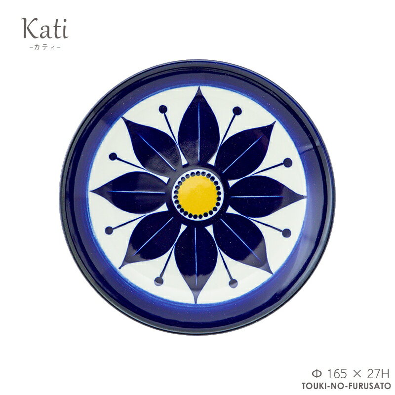 カティ 中皿 日本製 磁器 食器 陶磁器 器 皿 中皿 取皿 プレート Kati カティ 径16.5cm 丸皿 デザート皿 パン皿 花柄 フラワー 北欧 ネイビー イエロー モダン 北欧風 電子レンジ対応 食洗機対応 ギフト おすすめ