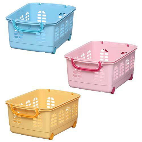 【大変人気商品のため、お取り置きは出来かねます。】 おもちゃや雑貨をたっぷり収納することができる、ローラー付きのバスケットです。取っ手を内側に倒すと中に物を収納したまま積み重ねることができ、取っ手を外側に倒すとすっきりと積み重ねができます。3つ重ねると押入れの下段にちょうどピッタリの高さ74.1cmです。◆商品サイズ(cm)幅約39×奥行約53.2×高さ約24.7(3段積み重ね時 約74.1cm)◆商品内寸(cm)幅約27×奥行約41.5×高さ約22.5(1つ当たり)◆耐荷重:1個あたり約5kg◆主要材質ポリプロピレン◆カラーペールイエロー・ペールブルー・ペールピンク*バスケットのお色は写真通りとなりお選びいただけません。enetshop1207-B 最強翌日配送対象商品に関するご案内 最強翌日配送対象商品・対象地域に該当する場合は最強翌日配送マークがご注文カゴ近くに表示されます。 最強翌日配送可能なお支払方法は【クレジットカード、代金引換、全額ポイント支払い】のみとなります。 下記の場合は最強翌日配送対象外となります。 ・15点以上ご購入いただいた場合 ・時間指定がある場合 ・ご注文時備考欄にご記入がある場合 ・決済処理にお時間を頂戴する場合 ・郵便番号や住所に誤りがある場合 ・最強翌日配送対象外の商品とご一緒にご注文いただいた場合 ・お届け先住所文字数が40文字以上の場合