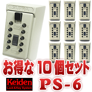 【ポイント5倍】キーボックス 暗証番号 ダイヤル keiden 計電 PS6お得10個セット 鍵番人 壁付け型プッシュ式PS-6 アイボリー ホワイト 白